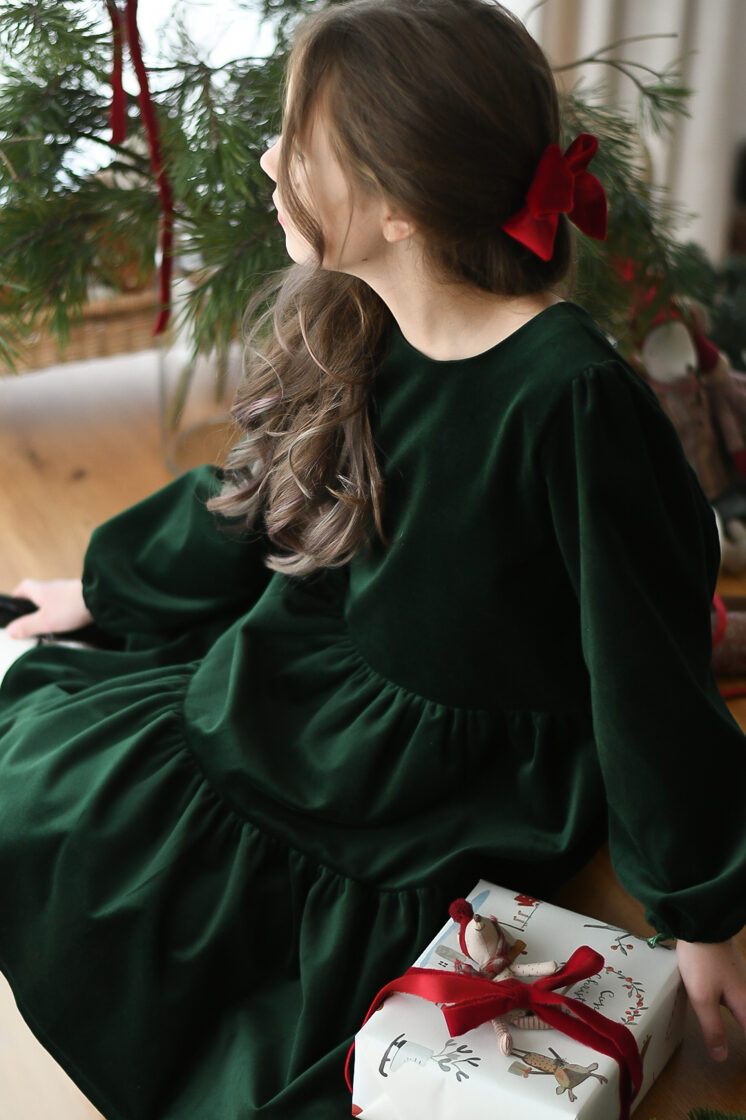 Fügen Sie mit diesem weichen und wunderschönen Samtkleid mit Schleife einen Hauch von Eleganz in die Garderobe Ihrer Kleinen hinzu. Es wurde für festliche und besondere Anlässe entworfen und vereint Komfort mit Stil.